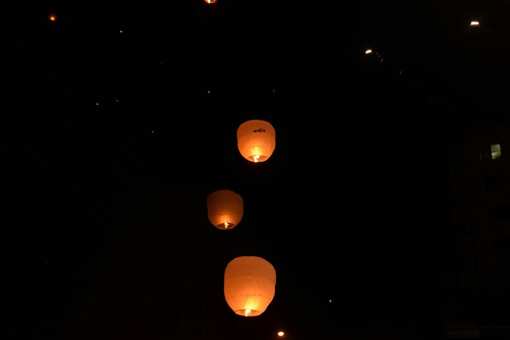 βSo Lauren and I actually got to Mae Jo at 2pm. They barricaded off the small road that went to the university so you have to walk about 20min from the main road. Itsβ really cool because it was filled with many food vendors, and people selling other random goods. [...] We ended up seeing a few different friends we had made in the 2 days we had been in Chiang Mai. They told us how bad the traffic was getting there. So that was our only consolation for arriving so early. Around 7:30pm they finally started the ceremony, I had learned there was no longer a peaceful meditation or chanting. I honestly was mentally and emotionally disappointed during the ceremony, people were being incredibly disrespectful, walking around, taking pictures, there were even people on their cell phones. I had expected more, I thought it was going to be life changing. It wasnβt until the actual count down of the release when I checked back in and appreciated the visual brilliance that was taking place. The heat from the lanterns and the hope from every person illuminated.β