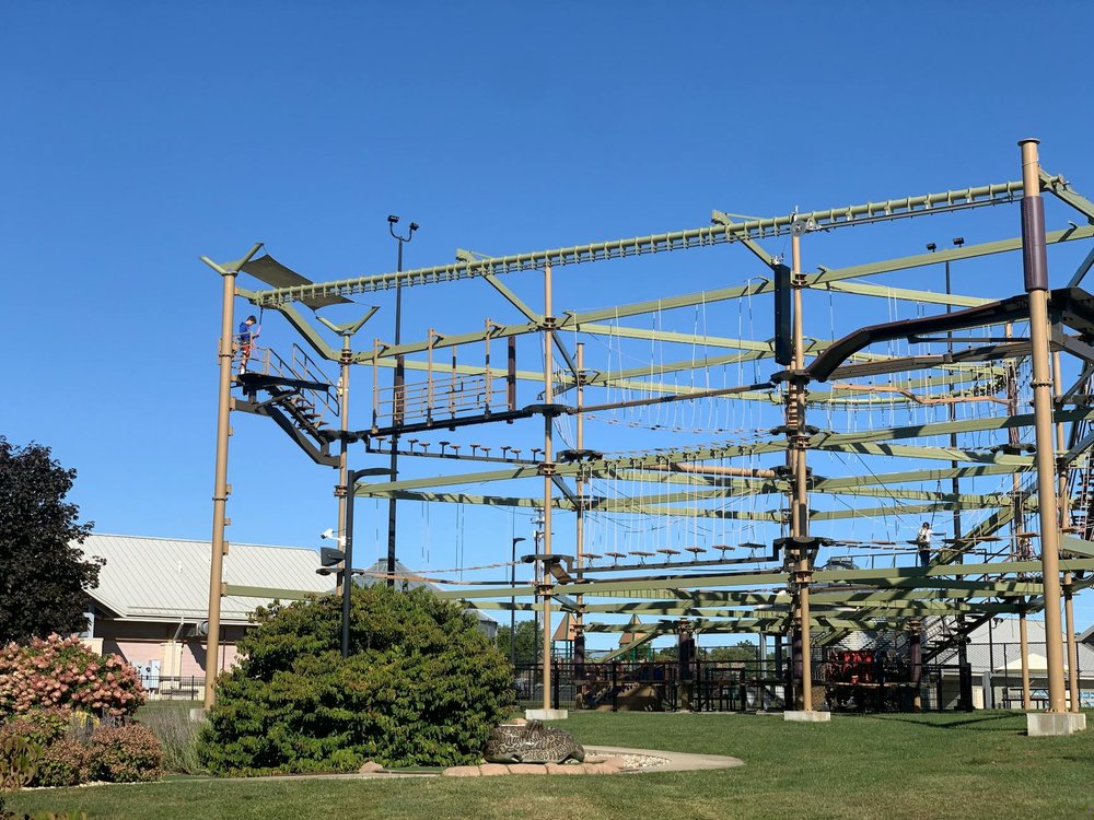 Create a themed obstacle course in a local park.