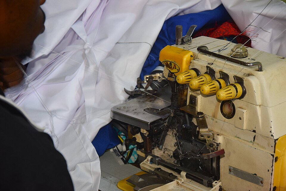 sewing machine or knitting needles, fabric or yarn