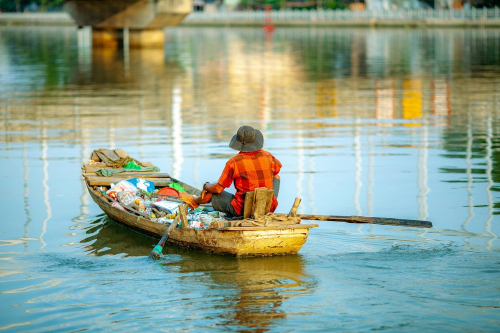 Craft and float a small boat made entirely from recycled materials.