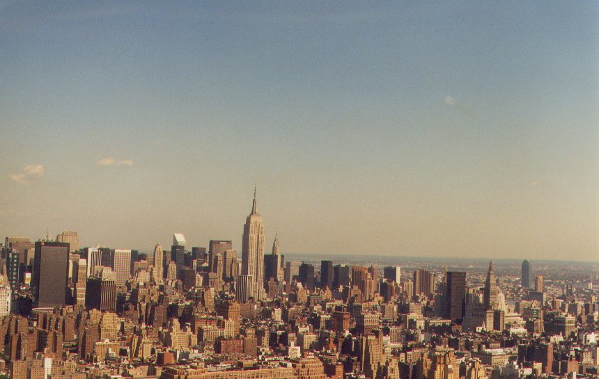 Fly in a helicopter over a major city