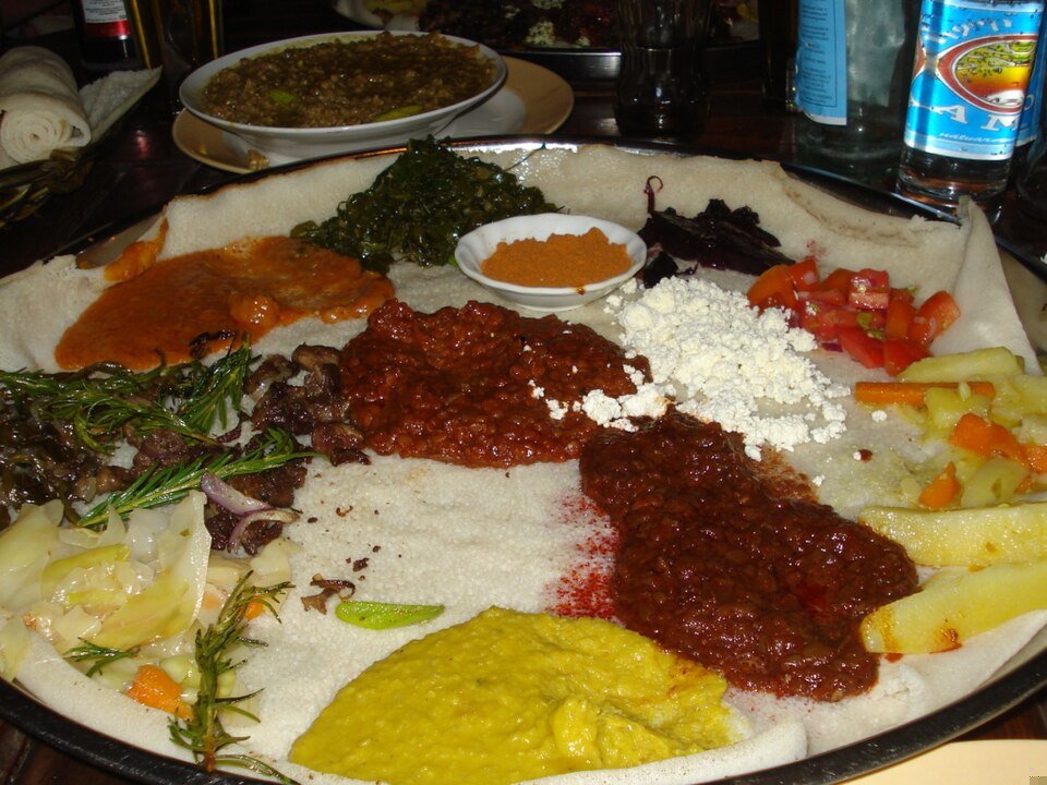 Try injera and wat in an Ethiopian restaurant